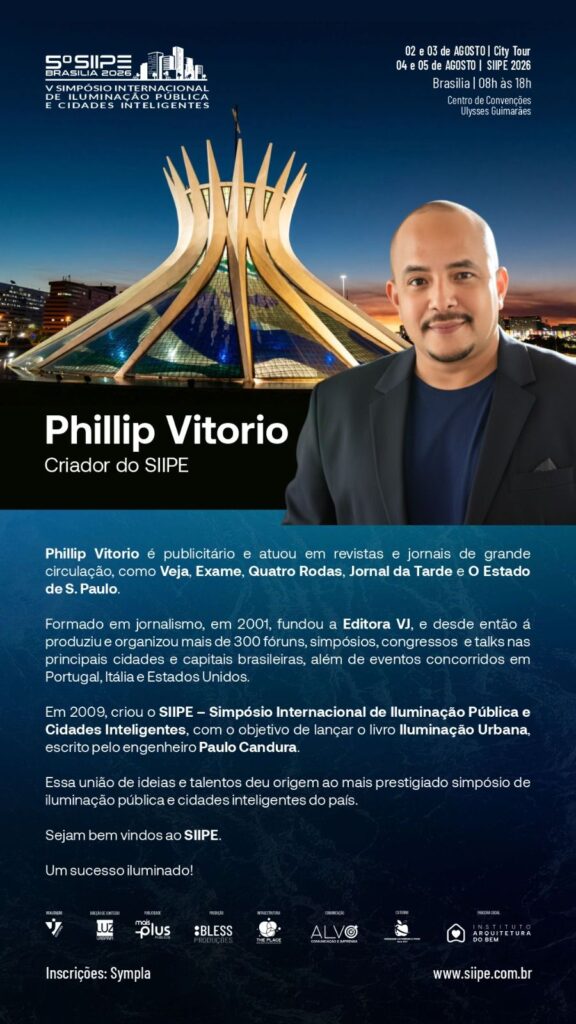 Com uma trajetória consolidada nos principais veículos de comunicação do país, como Veja, Exame, Jornal da Tarde e Estadão, o jornalista e publicitário Phillip Vitório, CEO da Editora VJ, dá mais um passo ousado em sua carreira: o lançamento, em agosto, do primeiro portal vertical da América Latina dedicado exclusivamente aos setores de iluminação pública, energias renováveis e cidades inteligentes.