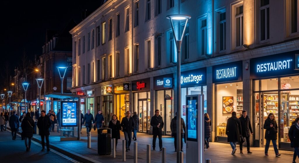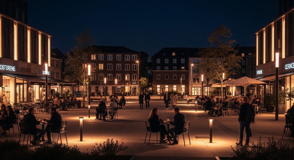 O efeito da iluminação sobre a economia local é concreto. Bairros comerciais que investem em iluminação atrativa e funcional registram maior movimento noturno, o que se traduz em aumento de faturamento para bares, restaurantes, lojas e serviços. A vitalidade gerada por uma boa iluminação contribui também para a valorização imobiliária das áreas beneficiadas.