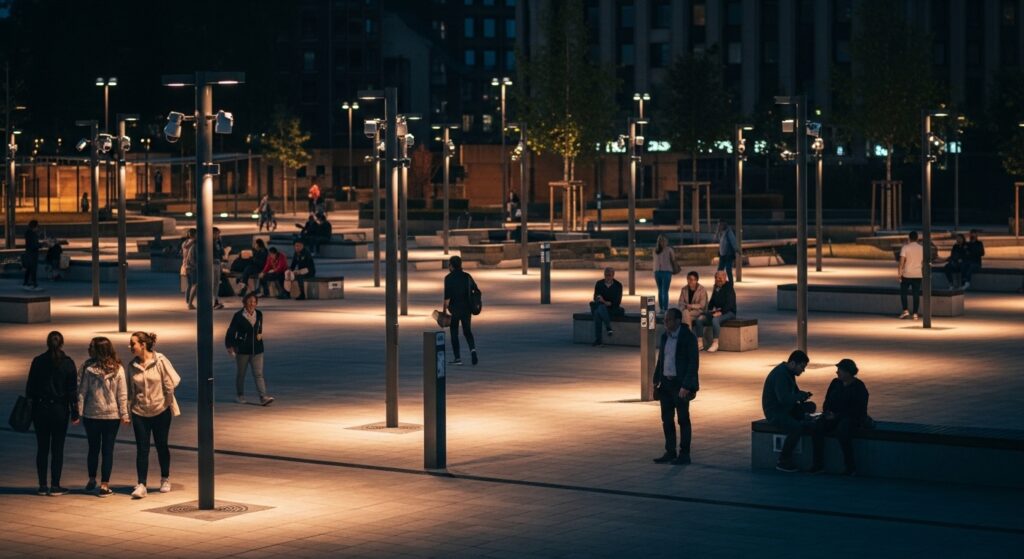 A sustentabilidade também integra o pacote. Os postes inteligentes ajustam automaticamente a intensidade da iluminação de acordo com a presença de pessoas ou veículos na via, evitando desperdício energético em horários de baixo movimento. Essa funcionalidade, aliada à adoção de tecnologia LED, contribui para a redução do consumo elétrico municipal e para metas de eficiência ambiental cada vez mais presentes nas agendas das gestões locais.