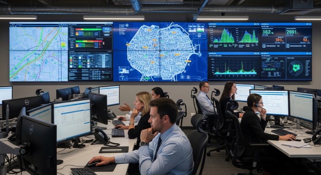 A conexão entre os sensores instalados nos postes e as centrais de monitoramento urbano cria um fluxo de informação contínuo que transforma a capacidade de resposta das cidades a situações de emergência. Quando um sensor detecta uma ocorrência que demanda intervenção imediata, seja um acidente, uma falha de equipamento ou uma situação de risco à segurança pública, o alerta chega à central em segundos, permitindo o acionamento das equipes competentes com uma agilidade impossível nos modelos tradicionais de gestão.