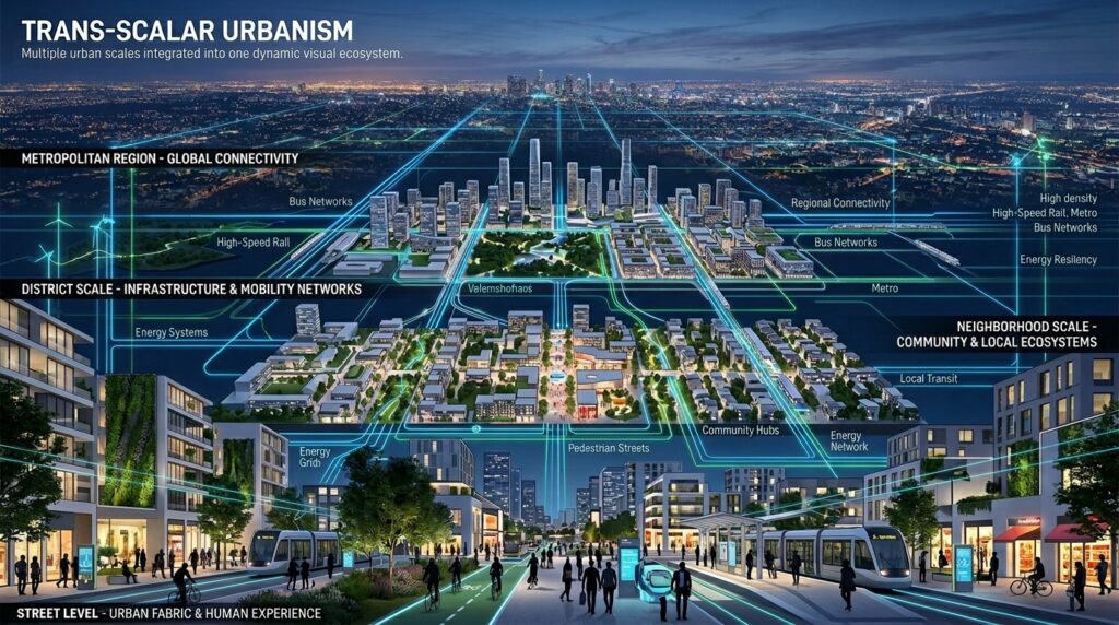 O conceito que propõe busca exatamente preencher essa lacuna: criar soluções que atendam desde uma grande região metropolitana até uma rua, passando por municípios de diferentes portes. Usando tecnologia como ponte entre escalas que hoje não se comunicam, seja por incompatibilidade entre legislações municipais e estaduais, seja por limitações financeiras que impedem cidades menores de acompanhar o que metrópoles conseguem implementar. “O que a gente busca é encontrar uma possibilidade de cima para baixo, para que certas ferramentas sejam de fato implementadas para todos.”